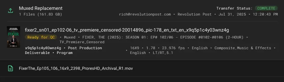 Placeholders ensure that files transferred to Sony Pictures will have uniform naming conventions and comprehensive technical metadata.