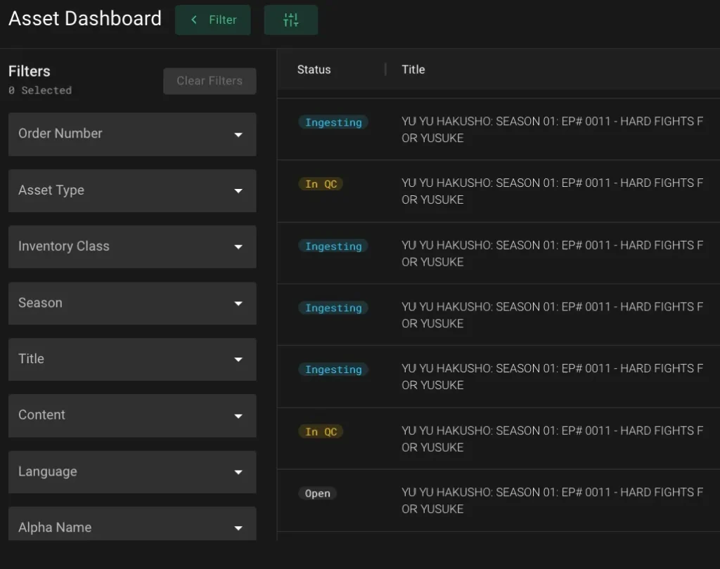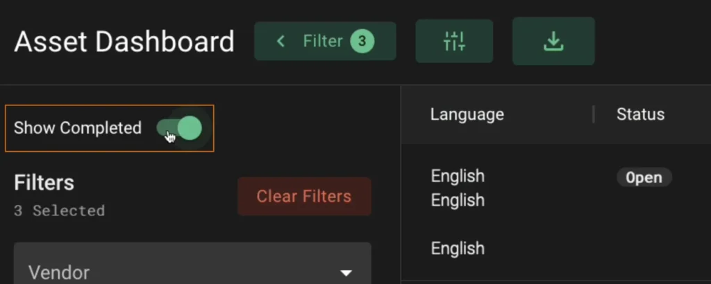 Next, navigate to the Status button and filter by Completed. You can now locate the placeholder needed to replace an asset.