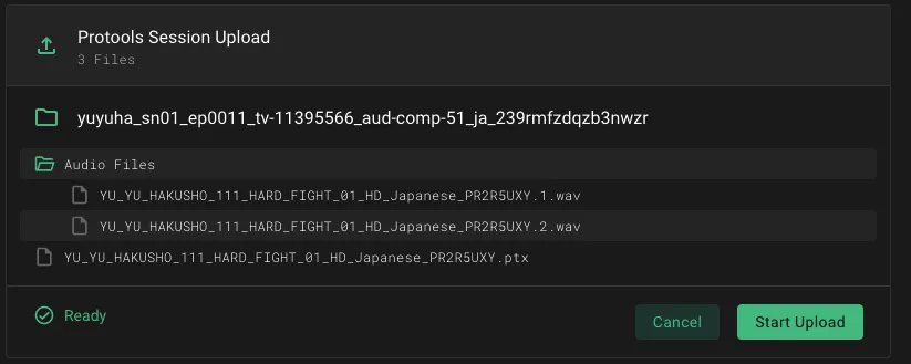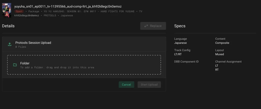 When you drag assets onto the dropzone, the Placeholder will display the name of the file to be uploaded or an inventory of the folder. If everything looks correct, click the Start Upload button.