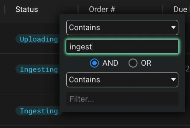 You can also filter in the Results pane by hovering over the column label which reveals a hamburger icon. Click the icon and a filter dialogue appears where you can select the values to filter the column by. If a column has filters applied a filter icon will appear next to the column label.